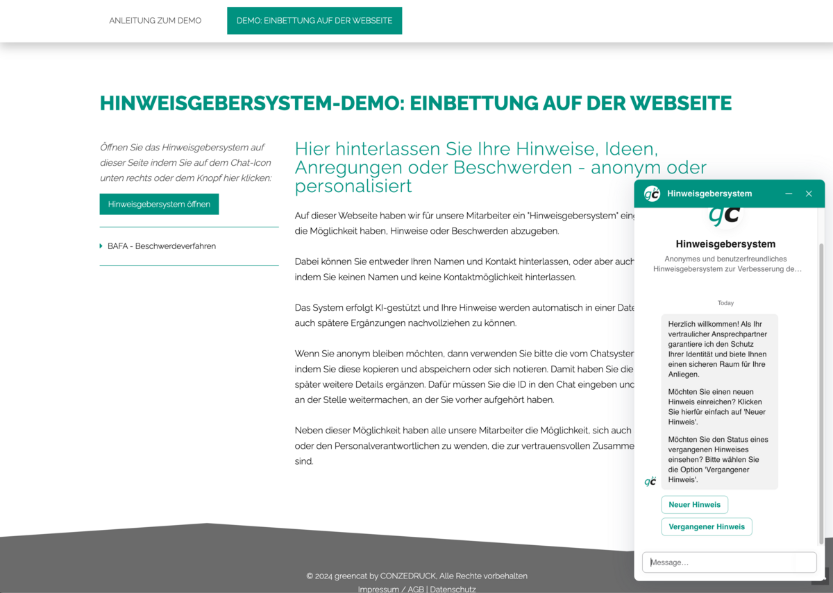 Leg los und teste jetzt das greencat-Hinweisgeber-System: