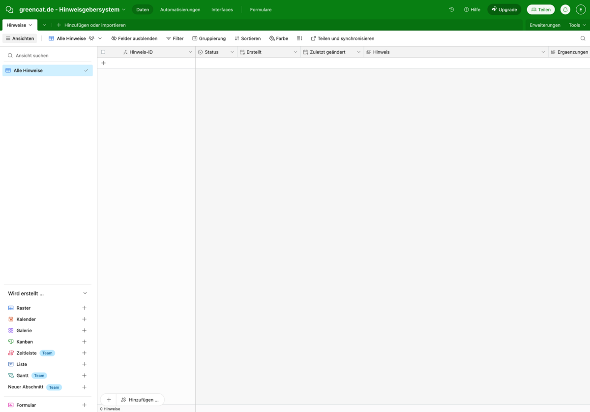 Dafür verwenden wir "Airtable" (www.airtable.com), eine sichere Datenbank, in der alle eingehenden Hinweise zentral abgelegt und verwaltet werden. Jede Meldung oder Hinweis kann am Bearbeitungsstatus nachvollzogen werden. Es können Kommentare hinzugefügt werden oder bei Bedarf weitere Details erfragt werden. Die Speicherung erfolgt gemäß geltender Datenschutzrichtlinien, sodass alle Informationen vertraulich und sicher sind.
